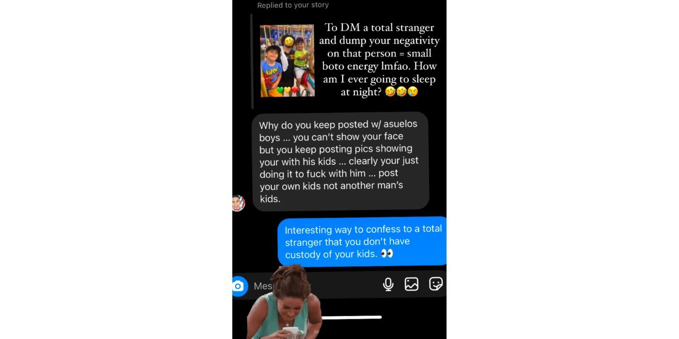 “/> El anónimo Prometido de 90 días El espectador continuó: “Claramente tu [sic] Solo lo hago para joderlo… publica tus propios hijos, no los hijos de otro hombre.”, como se revela en una captura de pantalla que Dallas tomó de los mensajes críticos. Dallas no estaba de humor para escuchar ningún comentario negativo y también respondió a la persona en la Historia de Instagram. Agregó, “Enviar un mensaje de texto a un completo desconocido y descargar tu negatividad sobre esa persona = pequeño boto energía lmfao. ¿Cómo voy a dormir por la noche?”como título. Añadió un GIF de ex Hermano mayor La miembro del reparto Elissa Slater haciendo una toma de saliva.