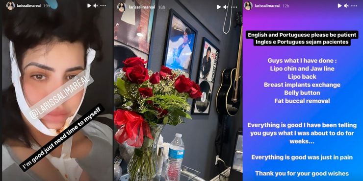 los Novio de 90 días: ¿Felices para siempre? Luego, la alumna respondió a las consultas sobre los procedimientos que realmente había realizado durante su nueva visita a Las Vegas. La madre de dos mencionó que optó por una liposucción en el mentón, la mandíbula y la espalda. Junto con estos, Larissa también había hecho un “intercambio de implantes mamarios, ombligo, eliminación de grasa bucal. ” Para apaciguar aún más a sus seguidores, Larissa, quien recientemente apoyó a Angela Deem, escribió que “todo es bueno“Antes de agregar,”Les he estado diciendo lo que estaba a punto de hacer durante semanas.“En conclusión, Larissa publicó:”Todo es bueno, solo dolía”Mientras agradecía a sus admiradores sus buenos deseos.