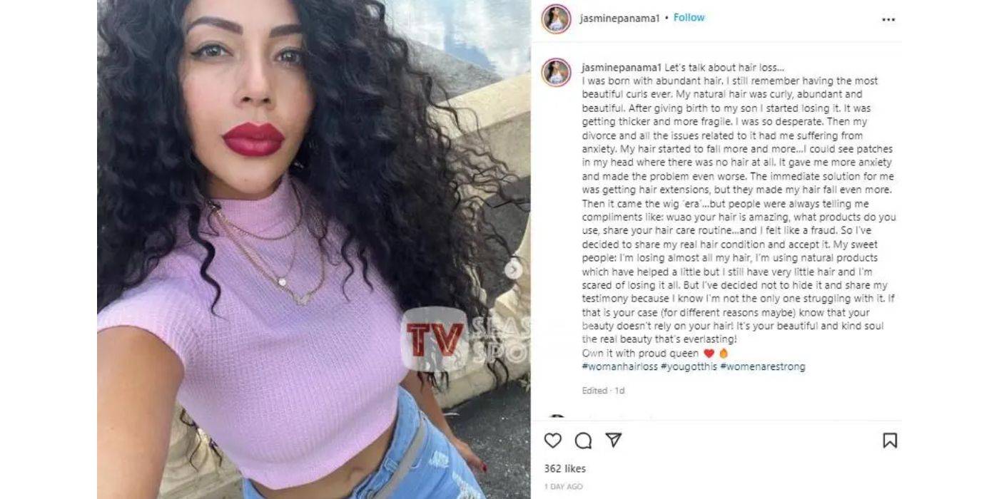 Jasmine escribió que había estado perdiendo una “gran cantidad de cabello”.