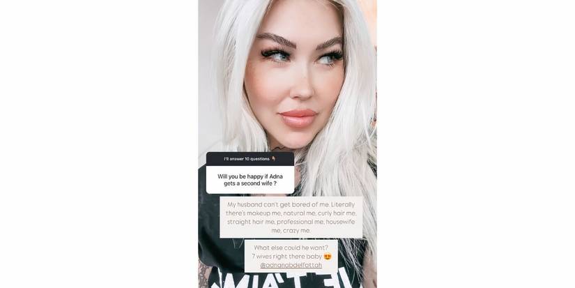 Recientemente, durante una sesión de preguntas y respuestas en Instagram, un usuario de las redes sociales preguntó lirio de tigre si estaría de acuerdo con que Adnan tuviera una segunda esposa. Ella respondió, “mi marido no puede aburrirse de mí” diciendo que no sucedería porque Adnan no podía tener suficiente de ella. Tigerlily añadió: “Literalmente estoy maquillada, yo natural, yo con cabello rizado, yo con cabello lacio, yo profesional, yo ama de casa, yo loca”. destacando las diversas miradas de ella misma que mantienen el interés de su marido. Tigerlily concluyó su respuesta afirmando Adnan no necesitaría nada más, ya que es tan buena como siete esposas..
