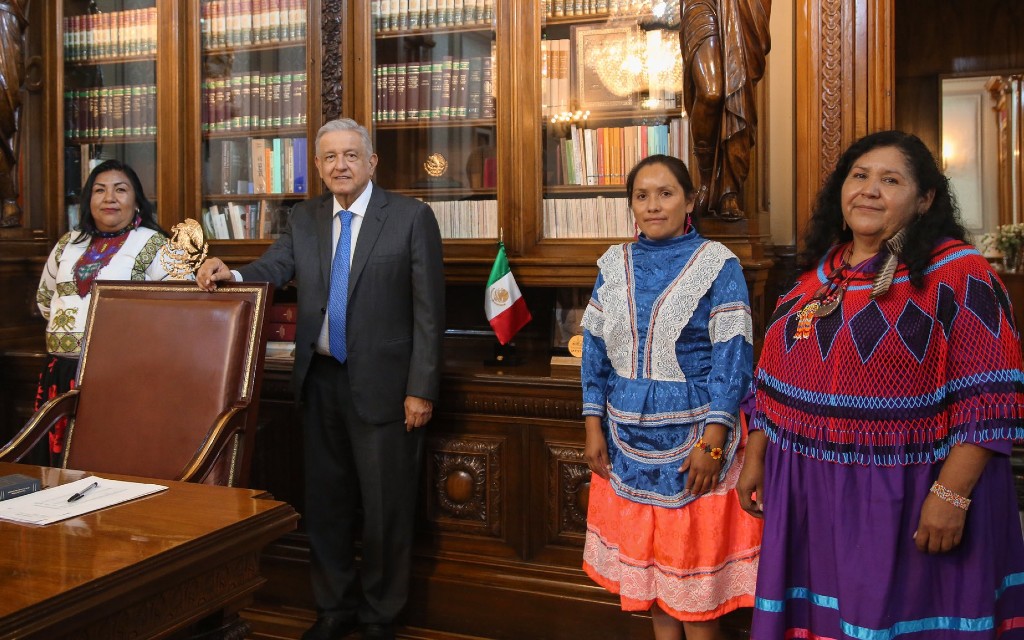 A través de su cuenta de Twitter el Ejecutivo federal informó que se reunió con “Claudia Morales, wixárika de Jalisco; Olga Santillán, tepehuana del sur de Durango y Mónica González, del pueblo Cucapá de Baja California”.