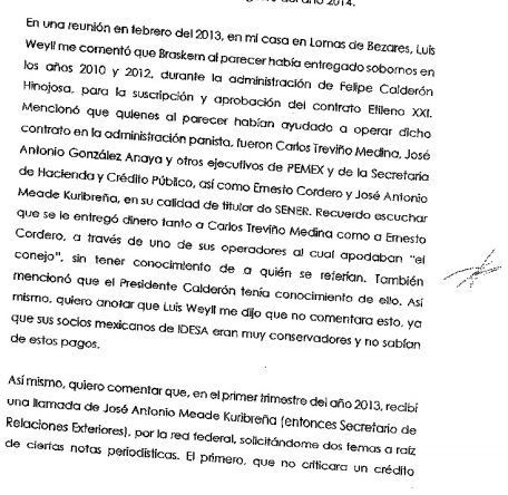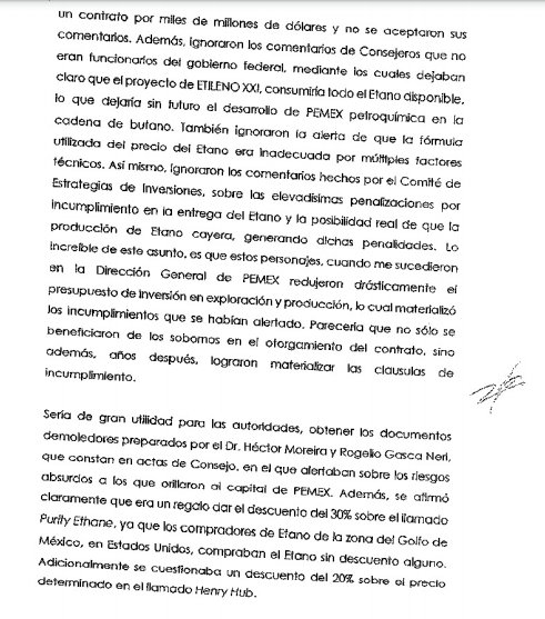 -Está siendo el tema Etileno XXI motivo de investigaciones judiciales, dado que el ex director de Pemex, Emilio Lozoya, ha dicho que el contrato se dio en el marco de relaciones políticas y de negocio vinculadas a hechos de corrupción o presunta corrupción. Recuerdo incluso que en la narración de hechos de Lozoya hay una parte donde dice que Idesa no sabía. ¿Qué dice usted?