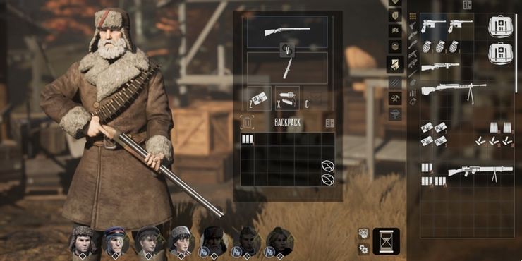Contras: En la mayoría de las misiones, hacer ruido no es sostenible a largo plazo, lo que limita las principales ventajas de Fetisov. También consume mucha munición de 9 mm con su SMG, por lo que no combina bien con Belozerova cuando las municiones son escasas. Su habilidad de suprimir fuego tampoco es útil, ya que los enemigos generalmente se ponen a cubierto cada vez que estalla una pelea de todos modos. Las armas pesadas no son tan útiles en Partisans 1941, ya que ocupan mucho espacio en el inventario.