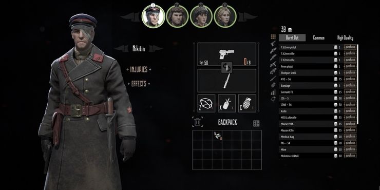 Contras: Mientras que ella mata rápidamente con un cuchillo, el cuerpo lento de Belozerova socava esta utilidad. Dado que sus dos armas se basan en rondas de 9 mm, Belozerova también consumirá este recurso con sus dos armas principales, lo que privará a Zorin y Nikitin de municiones preciosas. Como en Desperados 3, Partisanos 1941La munición de también es escasa. Su tirada de evasión tampoco es muy útil, ya que es poco probable que la controle lo suficiente como para usarla durante las peleas. Su velocidad la convertiría en una buena candidata para saqueos rápidos, pero sin forma de aumentar su capacidad de inventario, la tarea suele recaer en otros partisanos.