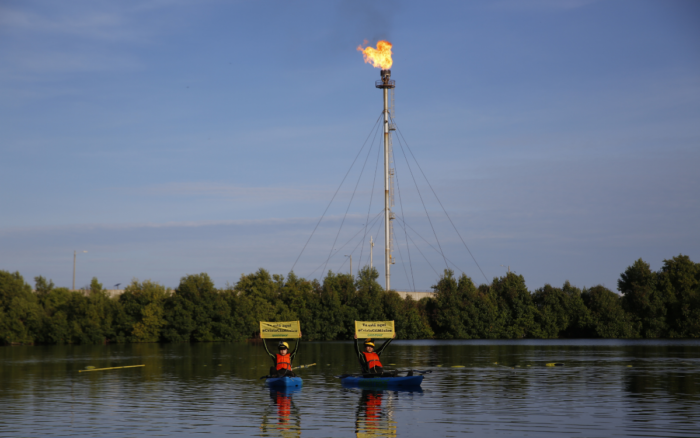 Protesta de Greenpeace frente a refinería de Dos Bocas: cambio climático no es prioridad de México