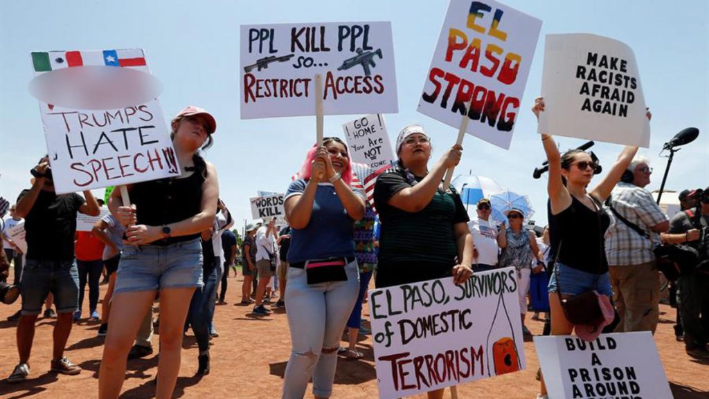 La protesta llegó un día después de que se diera a conocer que el autor del tiroteo en El Paso, fronteriza con México, confesó a la Policía cuando fue detenido que su objetivo era matar a “mexicanos”.