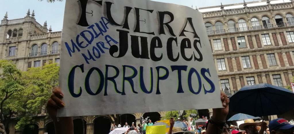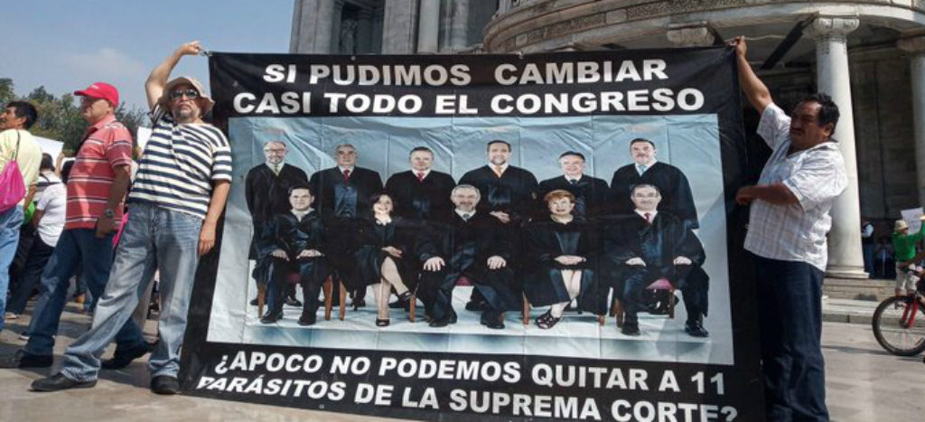 Los manifestantes protestan contra los casos de jueces que han liberado a delincuentes, así como los altos salarios de ministros y funcionarios de la SCJN.