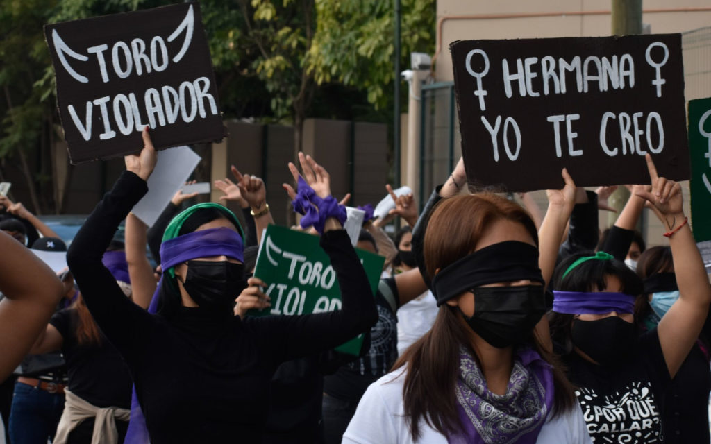 Las jóvenes llevaron pancartas con frases como “Un violador no será gobernador” y “Hermana, te creo”.