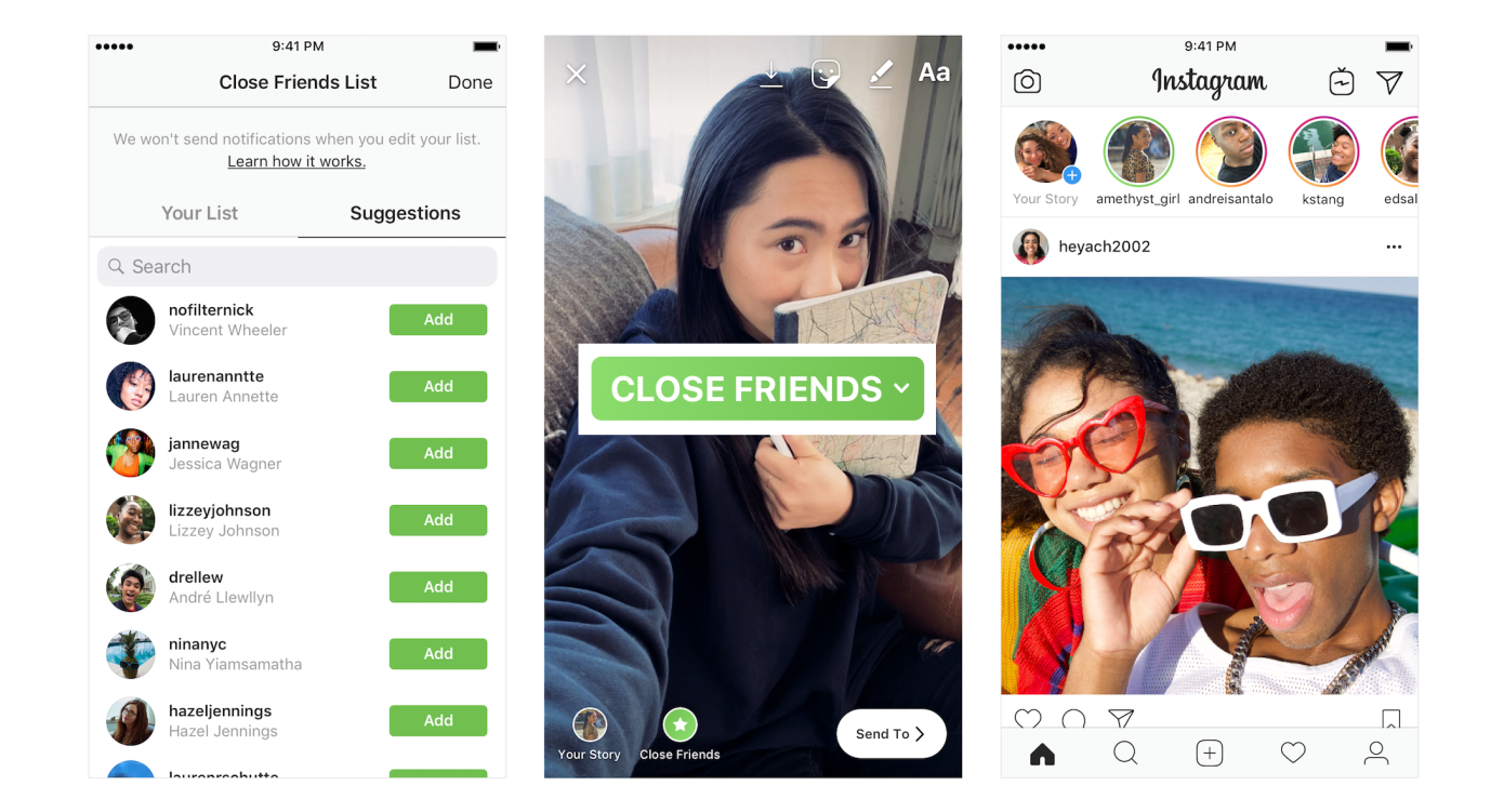 Luego, hace un año, Instagram hizo un gran avance. En lugar de crear una complicada serie de Listas de amigos que nunca recordarías quién estaba, creó una sola lista de Amigos cercanos con un botón dedicado para compartir con ellos desde Historias. La investigación de Instagram encontró que el 85% de los mensajes directos de un usuario van a las mismas 3 personas, entonces, ¿por qué no hacer que sea más fácil para las historias sin atraer a todos a un hilo grupal? El mes pasado escribí que "me sorprende que Facebook ya no tenga su propia función de amigos cercanos, y sería inteligente crear una".