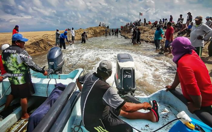 Dijo que pescadores y pobladores de varios pueblos afectados con sus propios medios, tuvieron que hacer “tequio” y abrir con pala y pico la bocabarra Santa Teresa, para permitir la circulación del agua. Sin embargo, consideraron que esto no es suficiente y hace falta la presencia del gobierno federal y estatal.