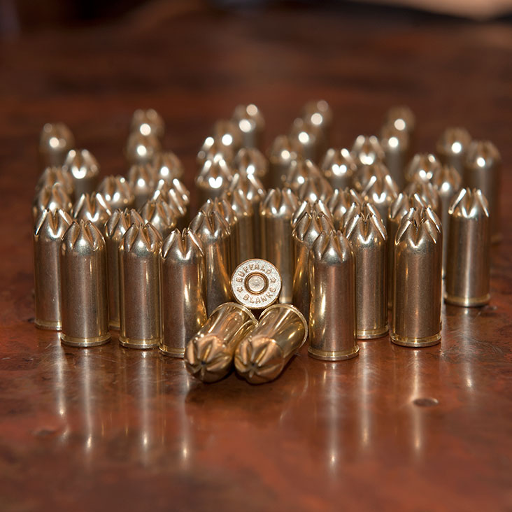 En general, las balas de salva no contienen proyectil, pero llevan pólvora e iniciador, así al hacer el gesto de disparar suenan como si hubiera balas reales.