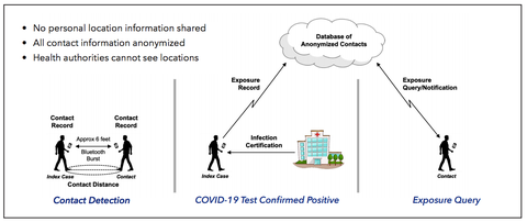 Su enfoque se basa en las comunicaciones Bluetooth en teléfonos inteligentes “como un proxy para la medición de distancia entre personas.” En otras palabras, las señales Bluetooth de tu smartphone pueden determinar la proximidad a la que has llegado a otra persona detectando sus transmisiones Bluetooth. Como individuos dan positivo, la aplicación enviará notificaciones de exposición a todos los usuarios de teléfonos inteligentes que han entrado en contacto cercano con el paciente en el lapso de las dos semanas anteriores, mientras que eran infecciosos.