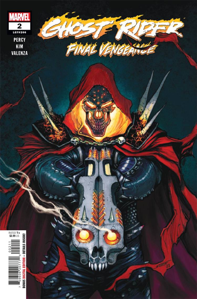 El motorista fantasma: venganza final El número 2 está escrito por Benjamin Percy y dibujado por Danny Kim. La vista previa comienza con un hombre sin hogar merodeando por las calles de Chicago en busca de comida. De repente, hay una explosión en un edificio cercano a él. El hombre corre hacia el edificio en llamas en busca de supervivientes. Sólo encuentra una persona, que se identifica como “Parker Robbins”. Parker agarra al hombre y le dice “pero puedes llamarme Ghost Rider”.