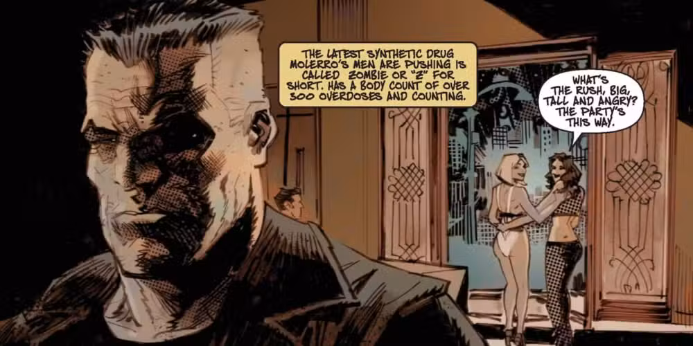 El capo de la droga zombi, Armando Molerro, utiliza la misma droga que trafica para eliminar todos los cabos sueltos. Cualquiera que huele un solo olor pierde su libre albedrío. Desde que atrapan a Punisher, pasa por innumerables dosis de la droga Z hasta convertirse en el nuevo secuaz de Molerro con lavado de cerebro, heredero del apodo de “El Zombie”.