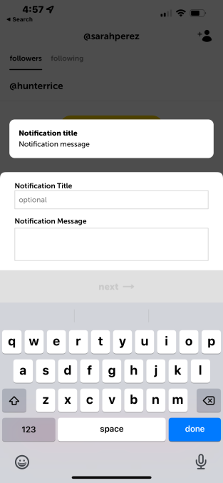 En caso de que no esté claro por su listado minimalista de la App Store, la nueva aplicación ofrece un modelo básico de seguidor / seguimiento y permite a los usuarios enviar una notificación automática a todos los que se suscriban a usted en la aplicación. Luego, esos seguidores pueden responder a esa notificación para iniciar una conversación uno a uno, similar a Sendit.