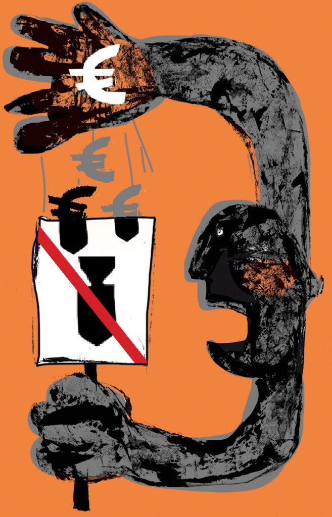 Los europeos llevamos en una mano la pancarta contra la invasión de Putin que destroza Ucrania y en la otra, el cheque que diariamente le damos a Putin para que pueda seguir destrozándola.