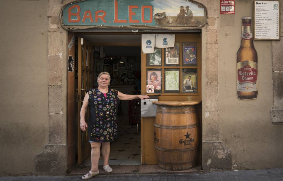 Ella, que va deixar la seva Rábita natal sent una nena per guanyar-se el pa a la capital catalana, amb prou feines ha sortit del seu barri, la Barceloneta. Leo és el seu bar. Tota una vida entre aquestes quatre parets empaperades de records al carrer Sant Carles. Un local que ret homenatge al cantaor flamenc Bambino, amic de la mestressa, i que guarda l’essència de la Barceloneta que va ser. Que encara és. Al bell mig del menjador, una verge; rere el taulell, una rastellera de barrets de colors i desenes de trastos que esquiven fotografies de cantants, de la Leo d’altres temps i, fins i tot, d’una somrient alcaldessa Ada Colau: “A la Colau, l’estimo molt. L’estimo des de sempre. Jo la tinc en el meu pensament d’abans que fos presidenta. Havia sentit d’ella que feia moltes coses bones per la gent”, explica.