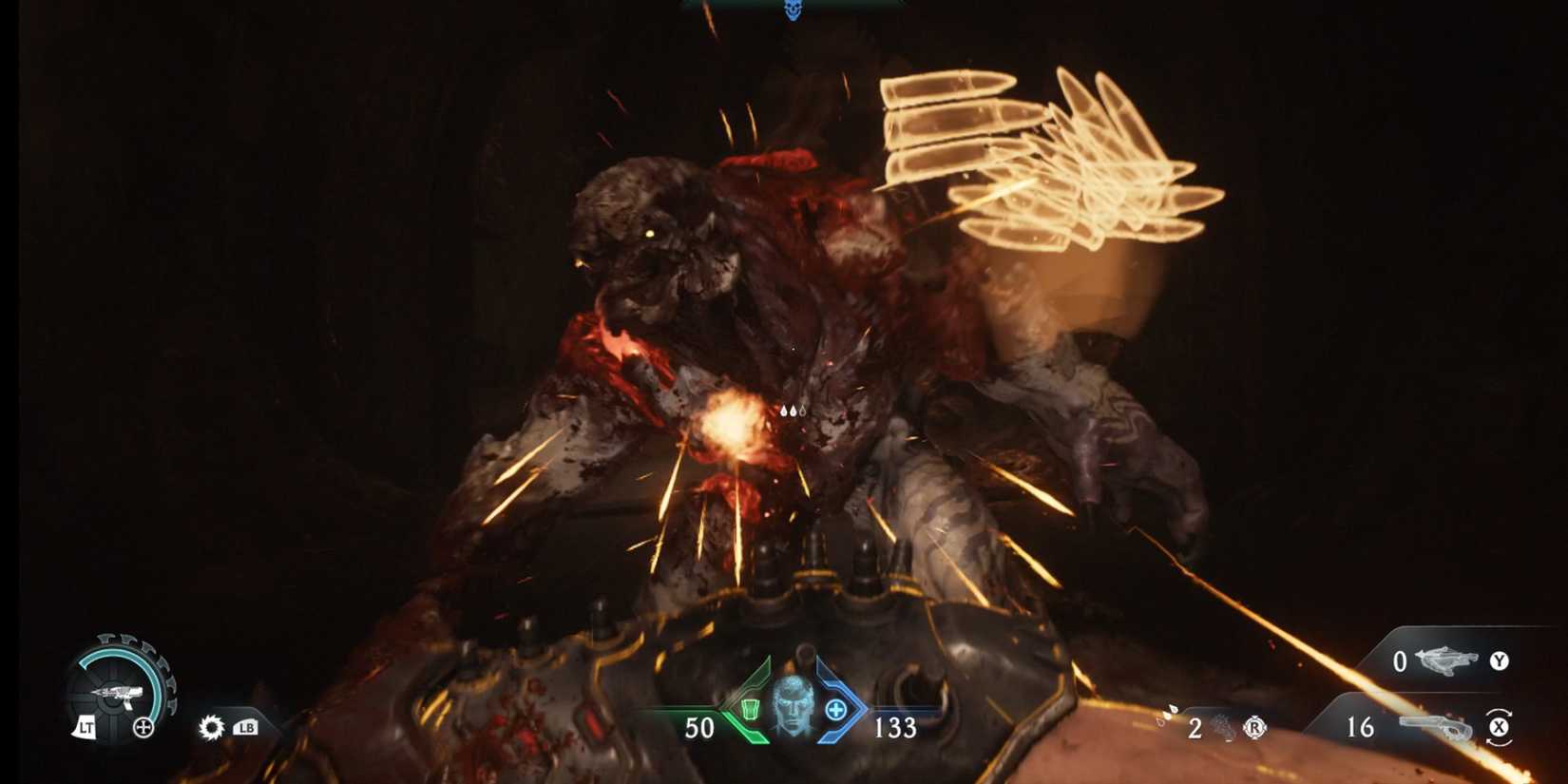 Aunque la adición de combate cuerpo a cuerpo es divertido, no encontré un montón de veces cuando tenía sentido usarlo en lugar de otro ataque. Si estaba lo suficientemente cerca como para desatar un combo con el guantelete de poder, estaba lo suficientemente cerca como para expulsar al enemigo con la súper escopeta. Por eso encontré que el DreadMace era la mejor opción. Hace una cantidad significativa de daño en un solo swing, por lo que es más eficiente que hacer un combo. Recargar la salud y la munición también es una gran ventaja, manteniéndolo en marcha a medida que el maza recarga.