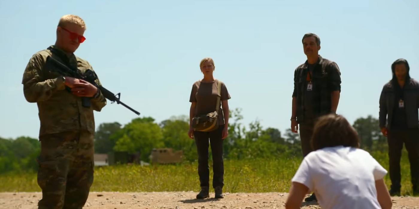 El personaje de Plemmons en Guerra civil Está solo en una escena, pero su pregunta muestra la clara división y el miedo que impregna el país dentro de la película. El soldado, que captura a Jessie (Cailee Spaeny) y Tony (Nelson Lee), hace la pregunta a los miembros restantes del grupo mientras está parado junto a una fosa común, y su aire casual añade más tensión a la escena. Aunque no tiene lealtades claras, el Soldado parece estar calibrando si el grupo está aliado con las Fuerzas Occidentales o la Alianza de Florida y son, por tanto, sus enemigos.ya que no considera que esos grupos sean “estadounidenses”.