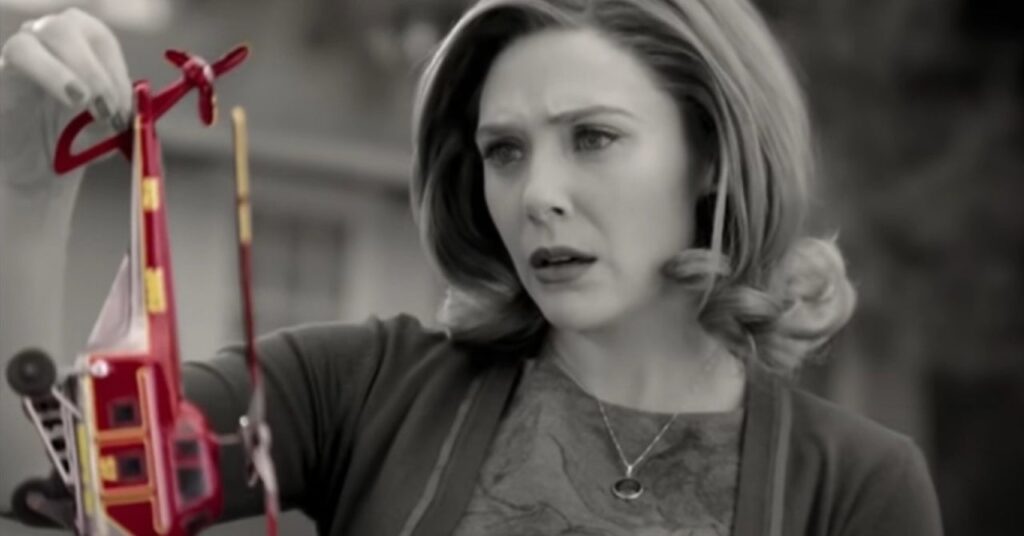 Los dos primeros episodios de WandaVision finalmente están aquí y hay mucho que desempacar cuando comience la Fase Cuatro de Marvel. Vimos a Wanda Maximoff (Elizabeth Olsen) y Vision (Paul Bettany) viviendo la vida suburbana en una comedia de situación clásica de los años 50 y 60, pero no todo son travesuras locas y contratiempos en la ciudad de Westview. Algo siniestro está sucediendo y ya hay muchas teorías flotando alrededor. Una de las primeras cosas que parecen estar mal en el nuevo mundo de Wanda es cuando descubre un helicóptero de juguete entre los arbustos. Sin embargo, es en color, lo cual es bastante extraño considerando los dos primeros episodios de WandaVision están en blanco y negro (piensa Pleasantville!). La pregunta es: ¿Cuál es el significado del helicóptero? Tenemos algunas teorías, pero cuidado, algunos spoilers de las dos primeras WandaVision los episodios están por delante …