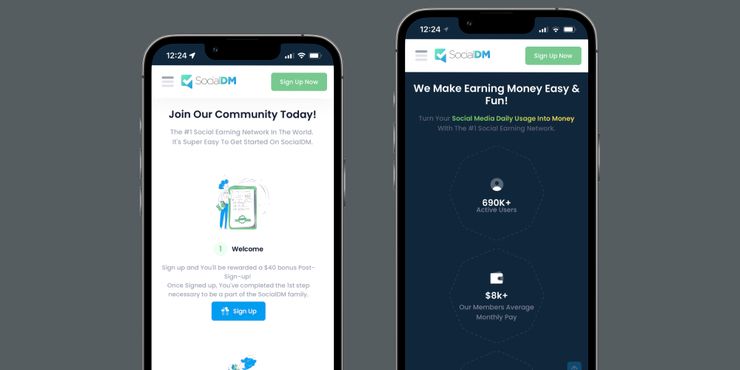 Eso nos lleva a la aplicación Social DM. Social DM comenzó a ganar mucha tracción en abril de 2022 y, a primera vista, es fácil ver por qué. Tan pronto como visite el sitio web de Social DM, la página afirma que Social DM “Es la forma directa de ganar $500 diarios” y “haz $500 hoy”. A partir de ahí, el sitio web de Social DM explica cómo funciona. Se les pide a los visitantes que se registren para obtener una cuenta Social DM, inviten a amigos y familiares a hacer lo mismo y luego retiren sus ganancias de aplicaciones como PayPal y Venmo. Los nuevos usuarios obtienen un bono de registro de $40 al unirse, más $15 por cada nueva persona que se una con su invitación.