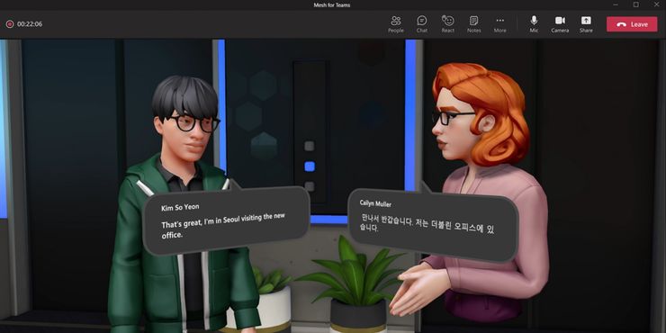Microsoft Mesh es un sistema que permite la colaboración cara a cara cuando los participantes se encuentran físicamente en diferentes lugares. El objetivo es proporcionar un entorno de trabajo familiar, incluso cuando se trabaja desde casa o en el extranjero. Mesh está disponible de forma limitada, principalmente ofreciendo solo avatares de Microsoft Teams, y ya está en uso por parte de los primeros probadores. Está disponible primero para HoloLens, pero supuestamente se planea que se convierta en una solución para múltiples dispositivos. Mesh permite reuniones y proyectos de trabajo con colaboración a través de un teléfono, tableta, computadora portátil o computadora de escritorio, así como auriculares AR o VR que presentan la experiencia más inmersiva. Por invitación, Mesh se puede usar en la red social de realidad virtual de Microsoft, AltspaceVR.