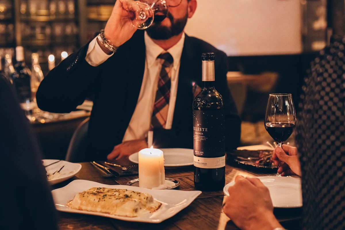 Se suele decir que lo primero que tenemos que hacer antes de probar un vino es observarlo. En su color y en su lágrima encontramos información antes incluso de que nuestras papilas gustativas empiecen a funcionar. Los tonos rojos nos cuentan si estamos ante una variedad que tiene notas de distintos frutos y su intensidad si tiene más o menos cuerpo. Celeste Crianza, por ejemplo, nos dice a simple vista que hay unos matices de arándanos simplemente por su aspecto visual, a los que más tarde, ya en boca, se unen notas de higos maduros, un toque ahumado y mineral fruto del terruño que le da origen y un trasfondo a cacao amargo y café torrefacto. Esos matices son los que no solo le otorgarán una personalidad marcada, sino también los que potenciarán su combinación con algunos platos.