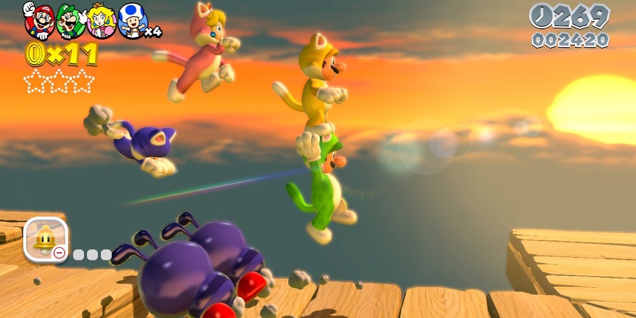 super mario mundo 3dLa opción de multijugador cooperativo hace que el juego sea aún más divertido y atractivo. Si alguien ha jugado o no mario juegos anteriores, la tontería caótica de los equipos que intentan ayudarse unos a otros en esta aventura de plataformas puede ayudar a crear un ambiente más alegre, dependiendo, por supuesto, de los jugadores. Es difícil no reírse y simplemente disfrutar de la situación cuando los personajes jugadores se visten con trajes de gato mientras intentan sobrevivir en este mundo.