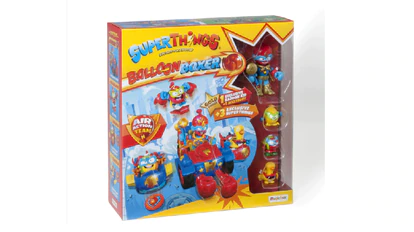 Otro accesorio para sacar el mayor partido a los SuperThings, en este caso, a través de un vehículo que ofrece múltiples acciones: saltar, disparar o atacar con guantes de boxeo. Junto con el vehículo se incluye un Kazoom Kid héroe y tres figuras de SuperThings exclusivos.