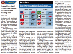 No obstante, el reportero de Reforma le aclaró que lo publicado no significaba que en general México ocupara esa posición a nivel mundial, sino que, ayer miércoles, el país fue segundo con más registros de muertes.