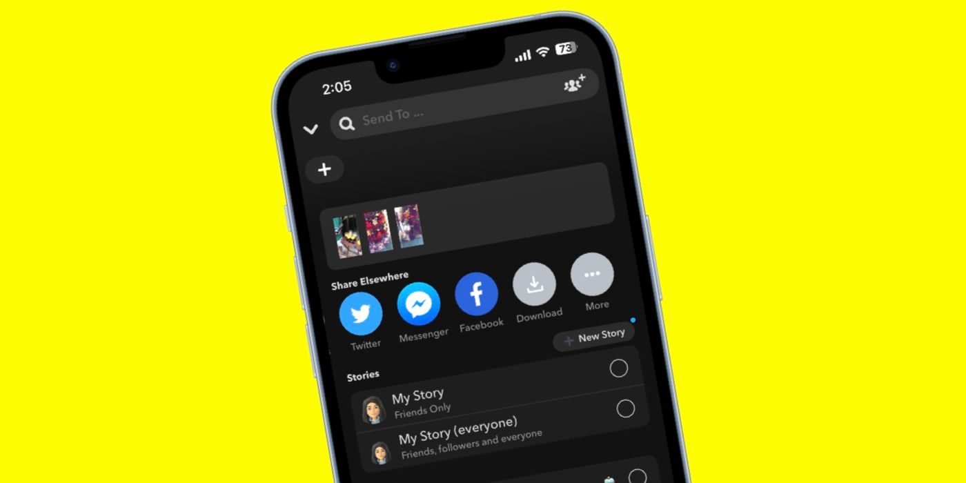 Toque el botón enviar en la esquina inferior derecha de la aplicación. Bajo ‘Compartir en otro lugar,’ tendrás algunas opciones para compartir los Recuerdos. Puedes copiar un enlace a los Recuerdos o compartirlos en aplicaciones como Mensajes, WhatsApp o Instagram. Alternativamente, deslice el dedo por las opciones y toque ‘Descargar.’ Esto guardará los Recuerdos en el carrete de la cámara de su teléfono, donde se pueden almacenar de forma segura o hacer una copia de seguridad en un servicio de almacenamiento en la nube si elimina Snapchat o su Snapchat cuenta.