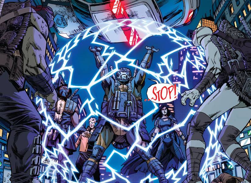 En Tortugas Ninja Adolescentes Mutantes: El Último Ronin II – Re-Evolución #2 de Kevin Eastman, Tom Waltz, Ben Bishop y Esau e Isaac Escorza, April O’Neil está hablando con Fugitoid, cuya conciencia ahora reside dentro de una supercomputadora en una base secreta. April y Fugitoid están probando el ADN de Odyn después de que misteriosamente se convirtiera en piedra durante su última misión.