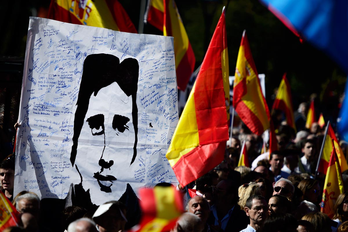 Pancarta con el retrato de Miguel Ángel Blanco durante un homenaje. (Foto: AFP)