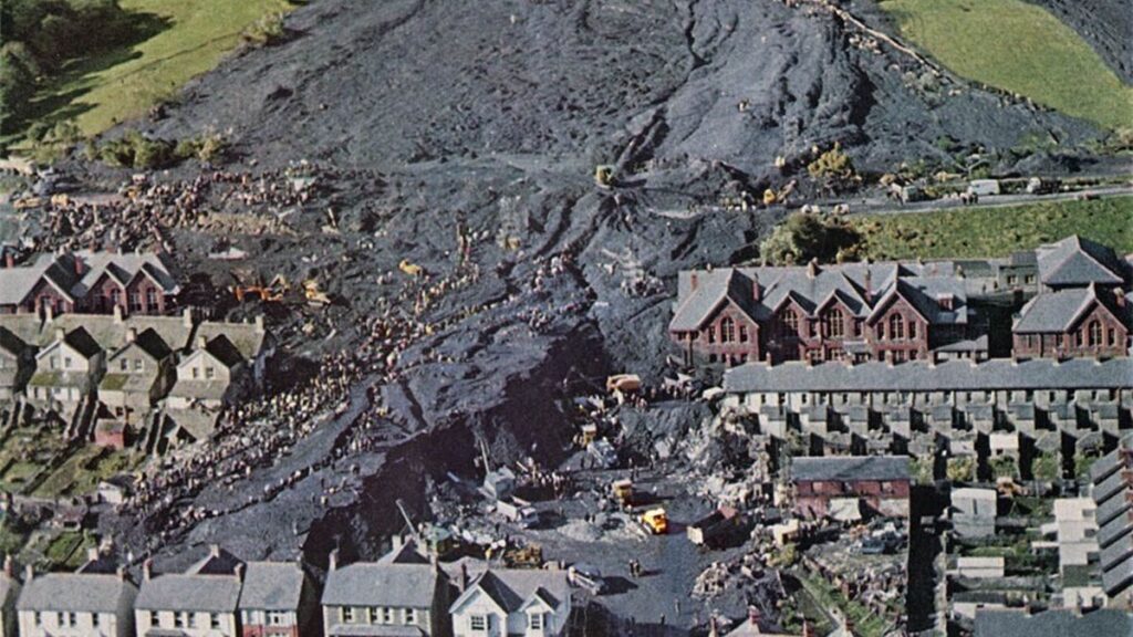 Años más tarde, el 21 de octubre de de 1966, se produce el desastre de Aberfan que sepultó una escuela primaria en Aberfan, Gales, matando a 148 personas, en su mayoría niños. La escuela fue enterrada por un deslizamiento de tierra de lodo y lodos residuales creadas por la mina, Merthyr Vale Colliery local, que tenía 700 pies de altura y se elevaba sobre la escuela local antes de que colapsara. ¿Quieres saber más? Descubre qué pasó el 21 de Octubre.
