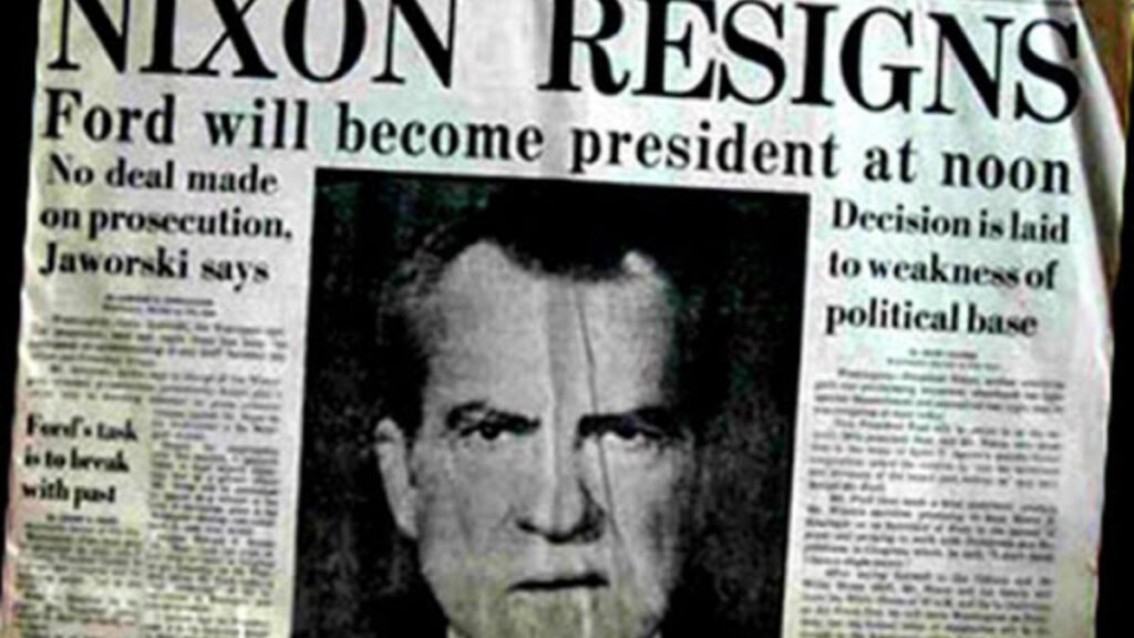 1974: en Estados Unidos, el presidente Richard Nixon anuncia públicamente por televisión su renuncia como resultado del escándalo Watergate.
