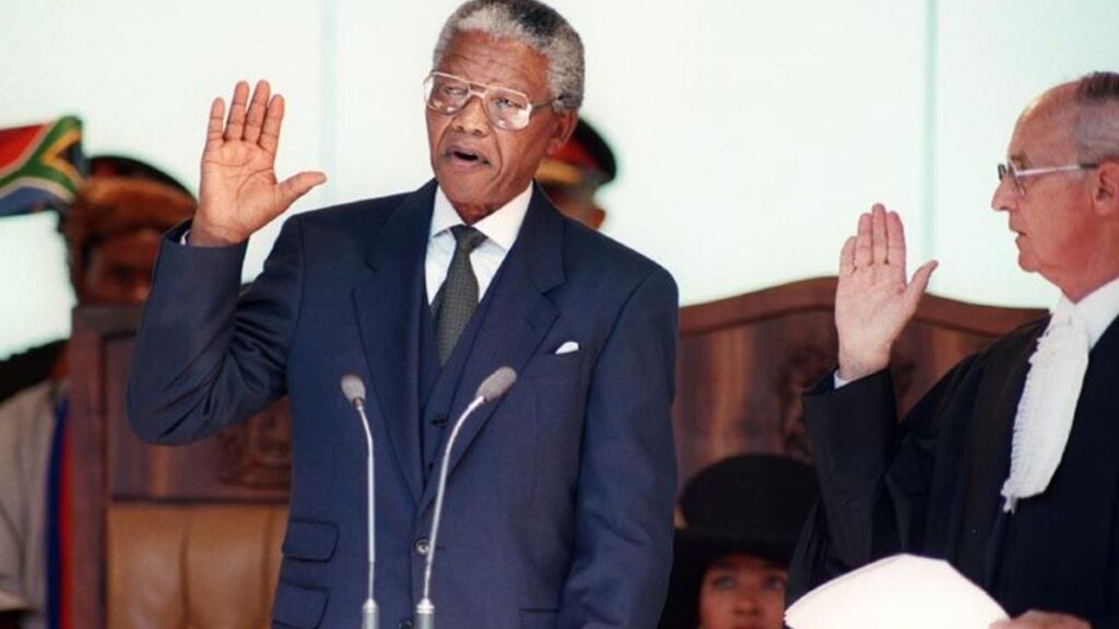 1994: Nelson Mandela es investido como el primer presidente negro de Sudáfrica.