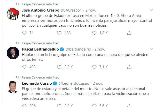 Y aunque no se ha pronunciado propiamente, el ex presidente Felipe Calderón ha dado varios retuits sobre el tema:
