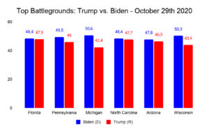 RealClearPolitics. (2020, 29 de octubre). Top Battlegrounds: Wisconsin, Michigan, Pennsylvania, North Carolina, Florida, Arizona. Obtenido de RealClearPolitics: https://tinyurl.com/yxrearw3