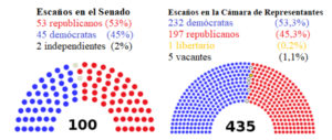 Por un lado, la disputa por el Congreso es fundamental ya que, incluso si Biden derrota a Trump, este no podrá aprobar leyes sobre temas clave a menos que los demócratas tomen simultáneamente el Senado, donde los republicanos actualmente tienen una mayoría de 53 escaños ante los 45 demócratas. Los republicanos enfrentan un mayor riesgo en las elecciones. Defienden 23 escaños, mientras que los demócratas defienden 12. Para asegurar la mayoría, los demócratas necesitarán quitar tres escaños a los republicanos, de ser electo Joe Biden, o cuatro, de ser reelecto el presidente Trump. Esto, en función de que es el Vicepresidente quien dirime los empates en el Senado.