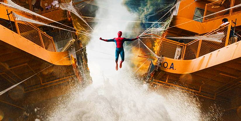 Levantando escombros de un edificio colapsado en Spider-Man: Homecoming.