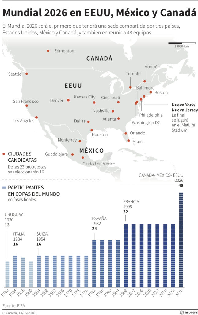 En entrevista para #AristeguiCNN, recordó que cuando se disputó el mundial en Corea y Japón, la FIFA reconoció algunos pequeños desajustes organizativos por tratarse de dos países; sin embargo, confió en que en 8 años estas tres naciones están en perfectas condiciones y tengan la tecnología, hotelería y buenos estadios para ser buenos anfitriones.