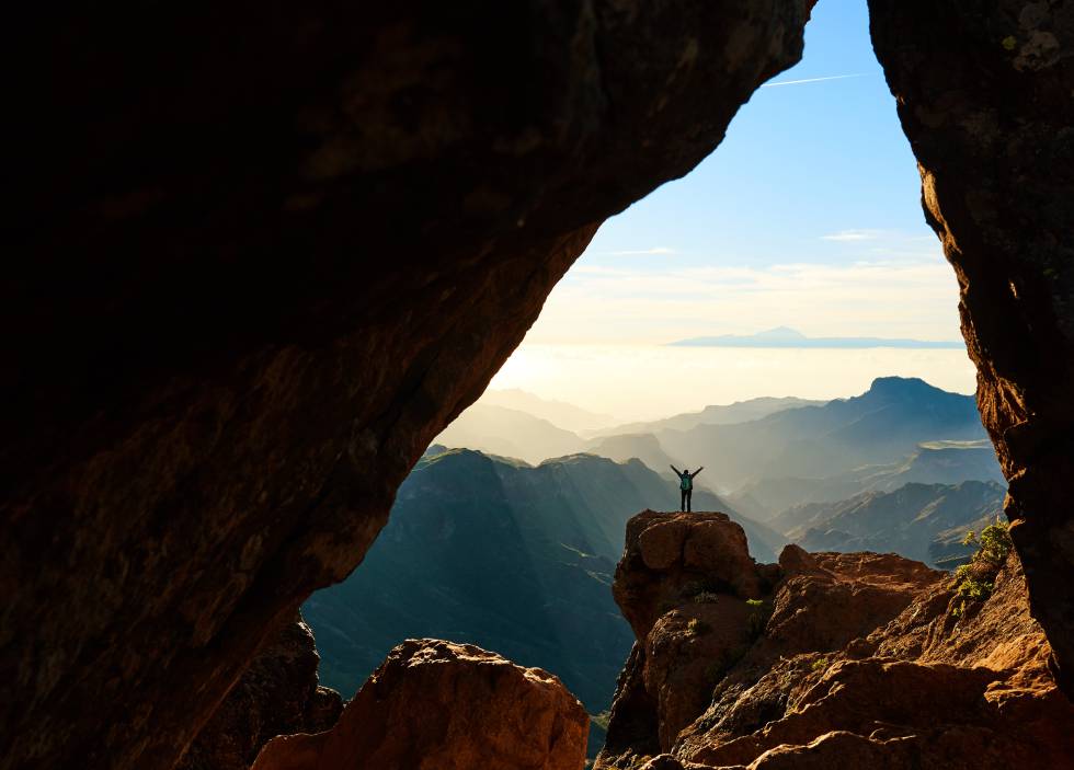 La isla también ofrece la posibilidad de vivir esta experiencia primitiva de primera mano, alojándonos entre paredes de roca para despertarnos frente a una inmensa garganta de tierra. Bien sin salirnos de Artenara (Living Artenara dispone de cuevas rústicas con terraza) o junto al pinar de Tamadaba, en el que alojamientos como El Mimo o Las Margaritas (artenatur.com) ofrecen una versión romántica de la caverna antigua con piscina compartida y vistas al volcán del Teide desde su terraza. La casa cueva que regenta Manuel Cabezudo en el caserío de Acusa Seca (656 60 42 90), a unos 15 minutos en coche del centro de Artenara, conecta a los primeros pobladores de la zona con los viajeros locales que se dejan caer a menudo por esta vivienda, la número 34 del poblado. El objetivo de Cabezudo es dar a conocer con un formato de turismo sostenible y responsable este poblado troglodita en la cumbre de Artenara. En esta coqueta cueva con capacidad para seis personas vivió durante 75 años un vecino de la zona. Aquí el lujo no es sinónimo de ostentación: su decoración sencilla se basa en paredes de cal impoluta, rejas pintadas de verde hierba y objetos traídos de diferentes viajes. Una gota nívea en la montaña con el brutal escenario que el Roque Nublo y el Roque Bentayga ofrecen junto a la caldera de Tejeda cada mañana a sus huéspedes a la hora del desayuno. Y en donde el verdadero privilegio es disfrutar del silencio que emana de las montañas, capaz de hacernos olvidar la falta de cobertura de los móviles, o bien de romperlo con alguno de los conciertos íntimos y reducidos que acoge el lugar cuando el sol desaparece.
