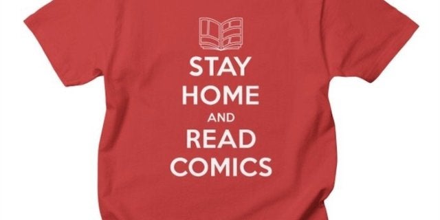 Dado que la distribución de cómics se detuvo en su mayoría y la mayoría de las editoriales ni siquiera están produciendo contenido nuevo en este momento debido a la nueva pandemia de coronavirus que tiene a casi todos trabajando desde casa, aquellos de nosotros que nos ganamos la vida en la esfera geek estamos tratando de salir. con formas creativas para mantenerse relevante y mantener esa revista en marcha. Por eso es inteligente que la gente de iFanboy haya diseñado una camiseta con temática de cuarentena que sirva como el mensaje perfecto para estos tiempos difíciles: “Quédese en casa y lea cómics. ” Un riff en los carteles de “mantén la calma y continúa” que han generado innumerables imitadores, la imagen presenta un cómic estilizado en lugar de la corona británica.
