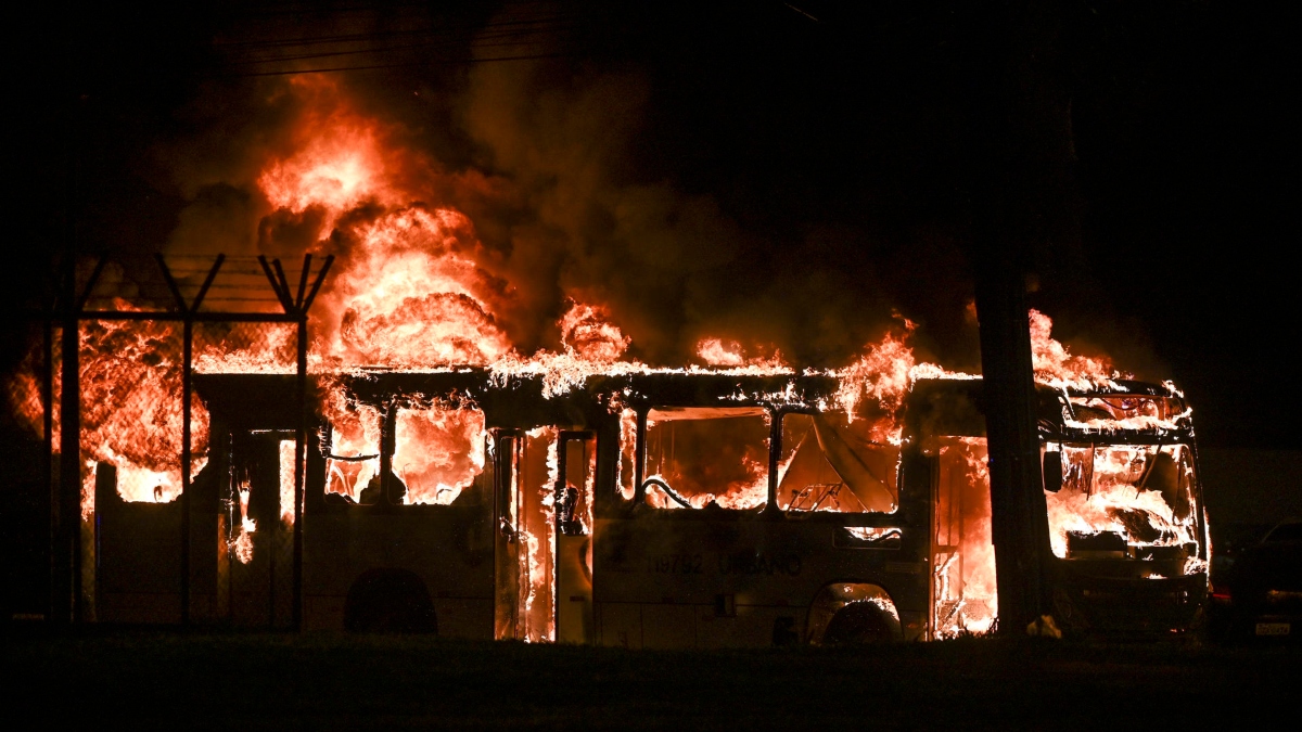 Los manifestantes, que vestían en su mayoría prendas de color amarillo y verde, que identifican a los seguidores de Bolsonaro, incendiaron un autobús urbano que circulaba por el centro de la capital y varios automóviles que estaban en el estacionamiento del edificio policial.