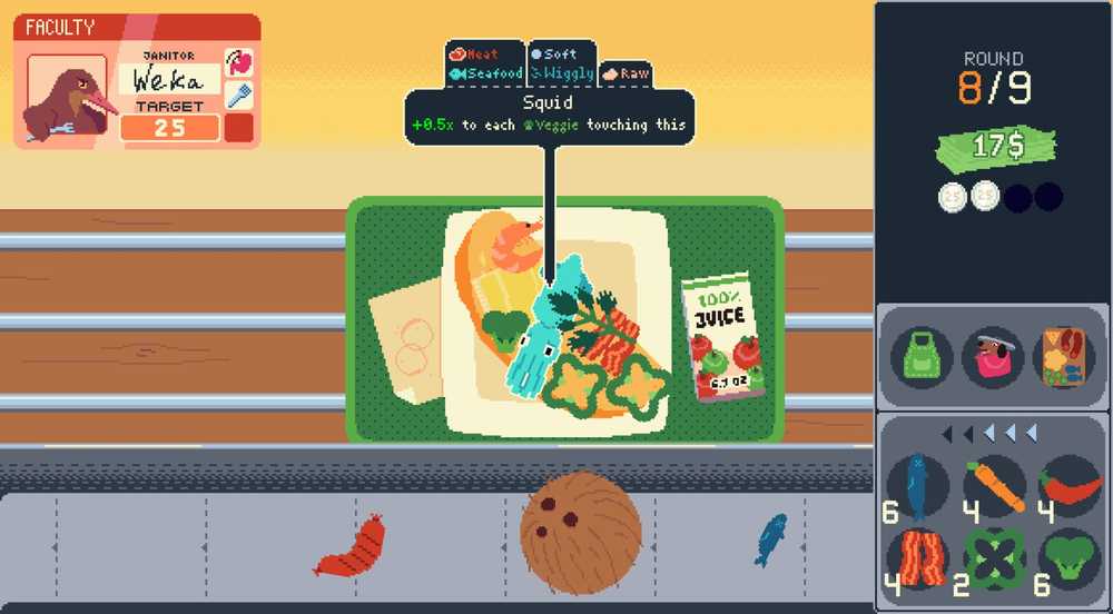 El juego es increíblemente absurdo de la mejor manera: parece un juego flash de los 90, los elementos se llaman cosas como caca, se pueden obtener impulso alimentando cosas en una boca en la pared de la sala de descanso y mucho más ridículo que me ha traído más de 50 horas de alegría. Muy parecido a Balato, Fábrica de números de Nubby fue hecho por un solo desarrollador, que continúa agregando elementos y otras características al juego incluso ahora.
