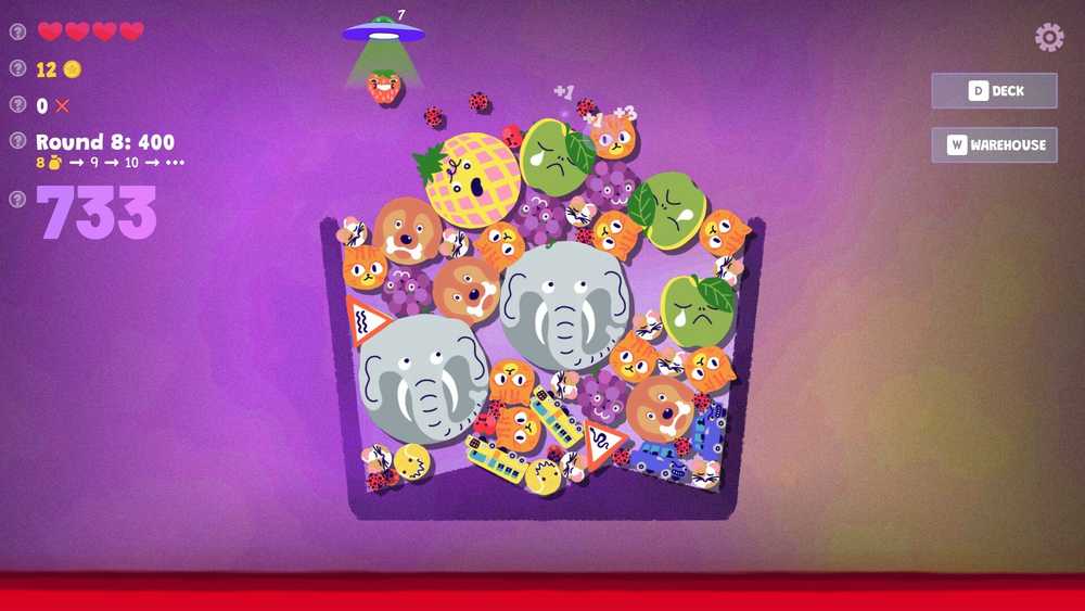 Almacén de Steve se inspira fuerte en Juego de Suikael rompecabezas de combinación de frutas, tomando su mecánico de combinación y mezclándolo con elementos de un constructor de cubierta de Roguelite. Steve es un alienígena que organiza su almacén, que contiene todo, desde frutas hasta vehículos y planetas, y es todo un desafío mantener las cosas en orden.