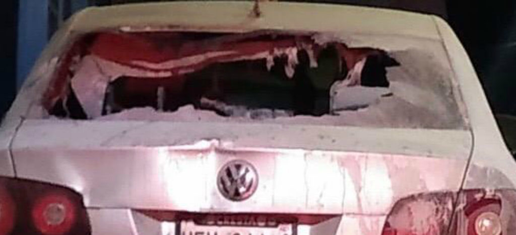 El ataque ocurrió alrededor de las 8:35 de la noche. Cerca del automóvil, que resultó con daños en la cajuela y el medallón, fue localizado uno de los artefactos arrojados.