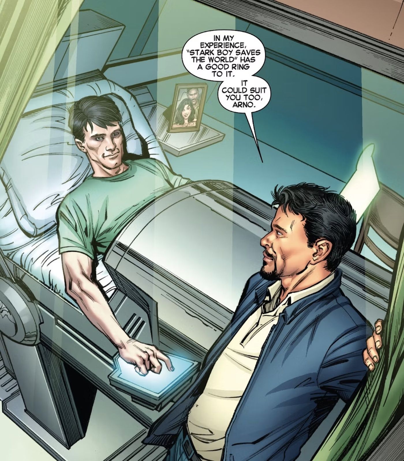 - Arno es puesto en cuarentena y excluido del mundo hasta que sus problemas pulmonares puedan curarse, lo que lleva a la adopción de Tony Stark.