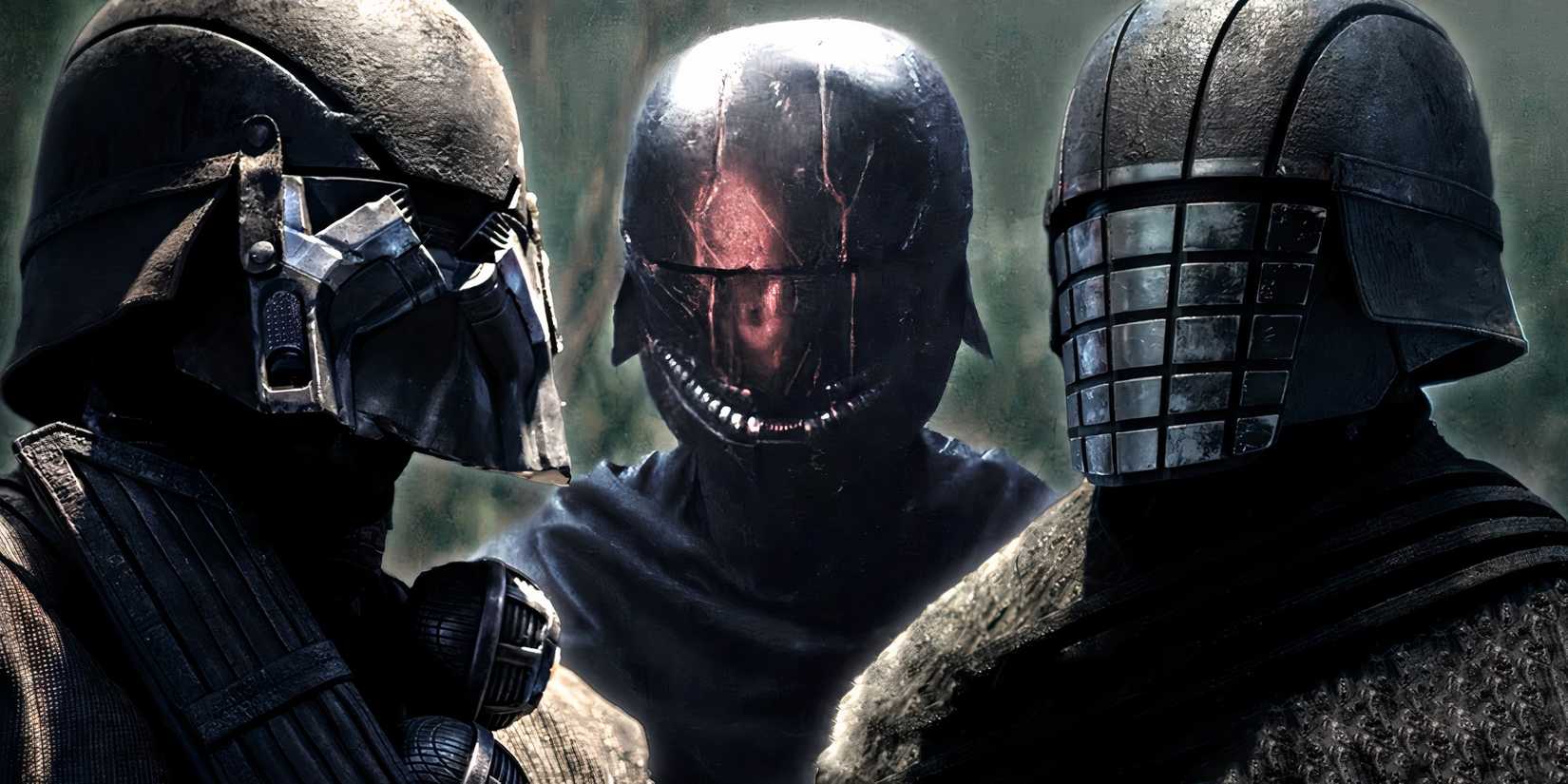 Algunos han teorizado que este no es un Sith en absoluto; más bien, que el diseño del casco recuerda deliberadamente a los que usaban los Caballeros de Ren. Introducido en el Guerra de las Galaxias Trilogía secuela, se sabe que los Caballeros de Ren han existido durante siglos. Veneran el lado oscuro, al que llaman “la Sombra”, y son particularmente activos en el Borde Exterior, lejos de la influencia de la Orden Jedi. La voz distorsionada del misterioso ser en El acólito Suena un poco como la voz modulada de Kylo Ren.