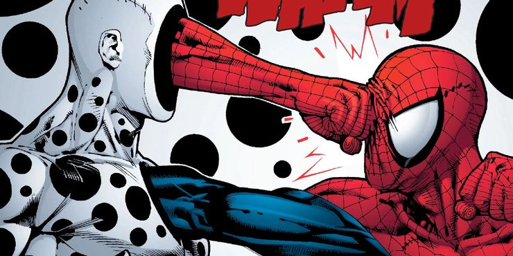 The Spot puede parecer una especie de broma, pero ha demostrado ser un aliado de algunos de los villanos más peligrosos de Marvel, e incluso ha podido usar sus poderes para vencer a los Cuatro Fantásticos, atrapándolos en la Zona Negativa. Desafortunadamente, también tiene mucha mala suerte; ha muerto varias veces, resucitando a través de lo que parece ser un aspecto de sus superpoderes, y una vez estuvo atrapado en la Dimensión Manchada por cortesía del Mandarín. Esa experiencia provocó un colapso mental y, durante un tiempo, Spot no pudo comunicarse con los demás, dejando notas que eran simplemente puntos en una página.
